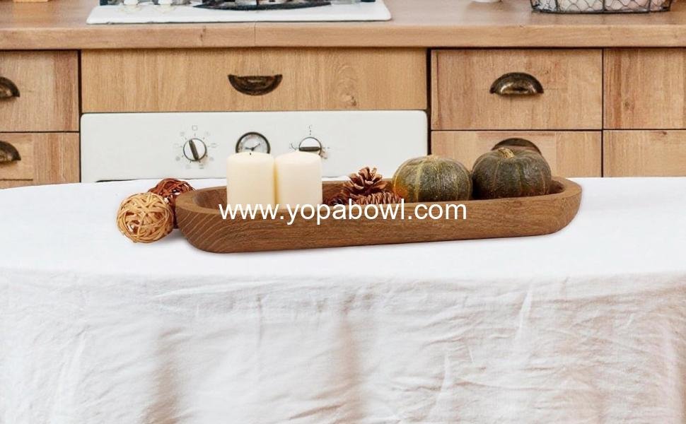Measuring 16 x 5 x 2 inches, this wooden dough bowl is an ideal size for various decorative and functional uses. Its generous dimensions allow for ample display, making it perfect for holding candle holders, aromatherapy items, seasonal plants, or festive holiday decorations. Available in different lengths, you can choose the perfect fit for your specific decor needs.